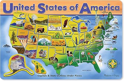 Amazon Com Melissa Doug Usa Map Puzzle 45 Pcs Melissa Doug Toys Games