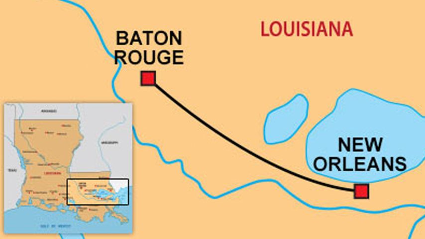 Map Of Louisiana Showing The State Capital Of Baton Rouge And The City Of New Orleans