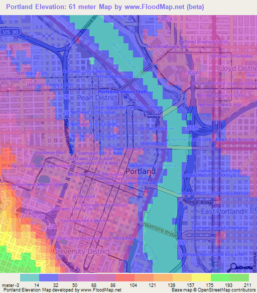 Elevation map of portland oregon. Portland is displayed on the Portland USGS quad topo map. Portland Oregon has an elevation of just 50 feet 15 m. As of 2019 Portland had an estimated population of 654741 making it the 26th most.
