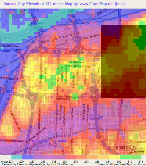 This elevation map of Kansas illustrates the number of feet or meters the state rises above sea level. It shows elevation trends across the state. This page shows the elevationaltitude information of Kansas City MO-KS USA including elevation map topographic map narometric pressure longitude and latitude.