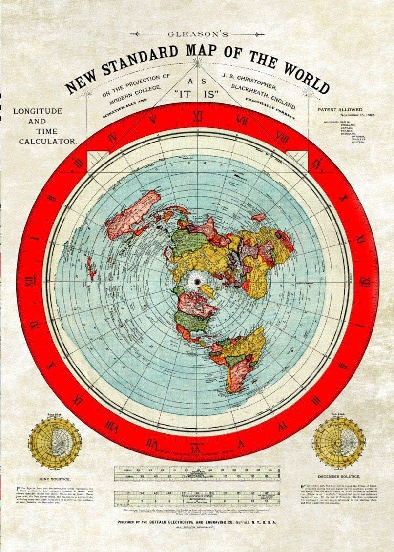 Flat Earth Map Sticker Restored Gleason S New Standard Map Of The World 1892 Large A1 Map 33 1 X 23 4 Amazon Co Uk Kitchen Home