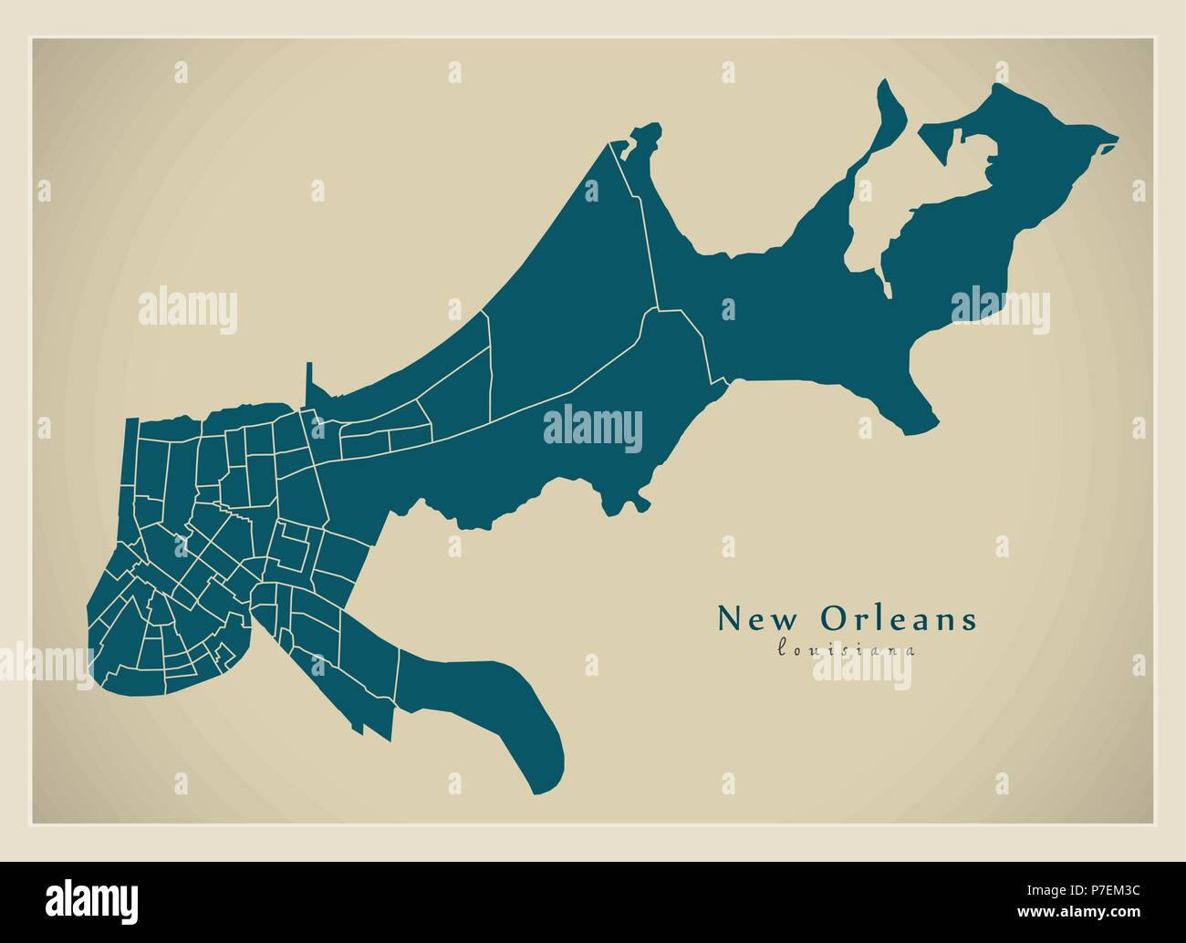 Modern City Map New Orleans Louisiana City Of The Usa With Neighborhoods Stock Vector Image Art Alamy