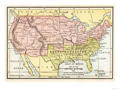 Map Of The United States In 1861 At The Start Of The Civil War Giclee Print Art Com
